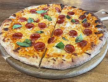 00 pizza dough baked with a la vodka sauce & fior di latte, finished with cup n' char pepperoni, basil leaves and oregano