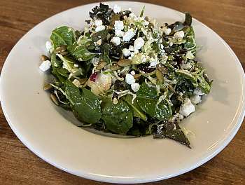 spinach, kale & shaved brussels tossed with a creamy apple cider & mustard dressing, topped with dried cranberries and toasted walnuts