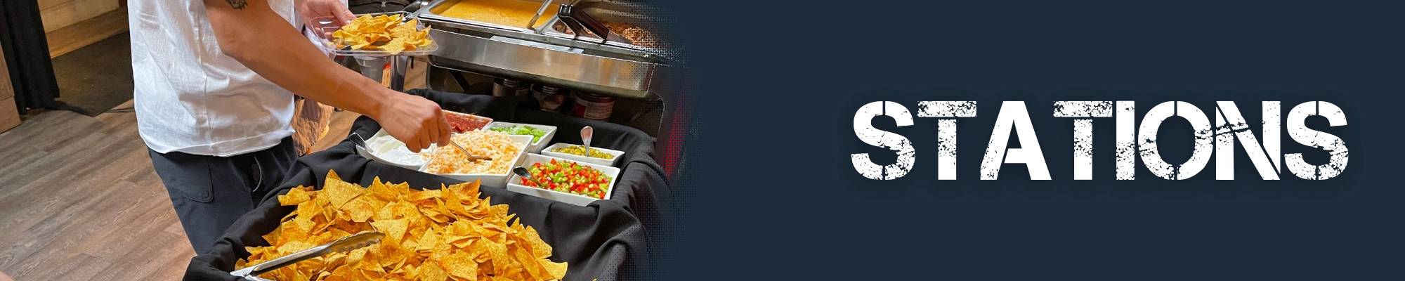 Penne pasta, pomodoro sauce, garlic alfredo sauce, white wine, olive oil, pesto, peppers, onions, wild mushrooms, tomatoes, basil, parmesan cheese, assorted buns with butter. Add: Crumbled Sausage | Diced Chicken Breast | chef attendant