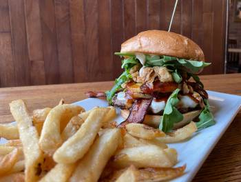 Our OG chuck and brisket patty topped with Swiss cheese, bacon, caramelized pineapple, crispy onions, chipotle BBQ sauce, arugula, and garlic aioli served on a brioche bun 22.95