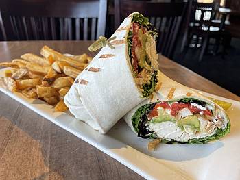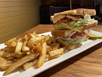 Grilled chicken, bacon, roasted garlic aioli, tomato and lettuce on roasted garlic sourdough bread 21.95