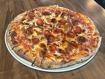 House pizza sauce, mozzarella, hot Italian sausage, cup n' char pepperoni, smoked bacon. All the hits, one pie 23.95