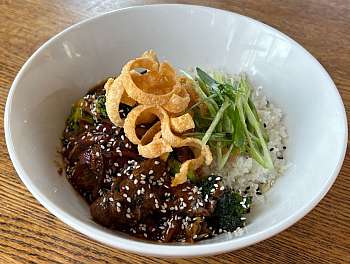 Shaved beef sauteed with broccoli florets, napa cabbage, and onions, tossed in a sweet and spicy Korean BBQ sauce. Served with sticky rice and topped with scallions & crispy wontons 25.95