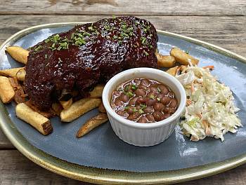 Half rack of pork baby back ribs grilled with honey chipotle BBQ sauce. Served with fresh cut fries and coleslaw 26.95 Full Rack 36.95 1/2 Rib & 1/2 Wing Combo 32.95