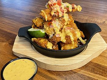 Buttermilk coated & panko breaded shrimp piled high in a skillet, topped with pico de gallo, served with our house made bang bang sauce 19.50