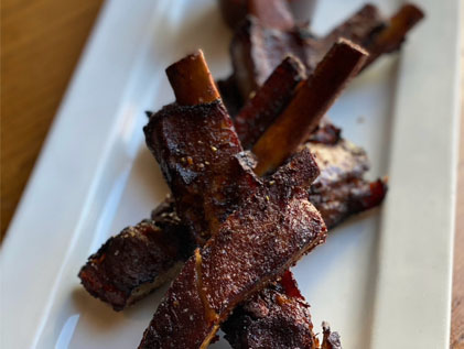 Crispy fall off the bone pork back ribs seasoned with coarse salt & cracked black pepper 22.95