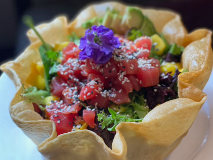 Sushi grade ahi tuna combined with ponzu sauce, mangoes, avocado & fresh cilantro. Served over baby greens inside a crispy tortilla bowl and finished with sesame seeds 24.95