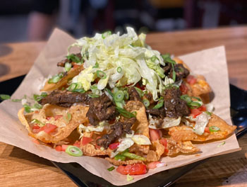 Wonton chips layered with Mozzarella & Cheddar cheese, topped with bell peppers, pico de gallo, shredded lettuce, scallions, and house made jerk chicken 32.95 Grilled Chicken 32.95 Veggie 24.95
