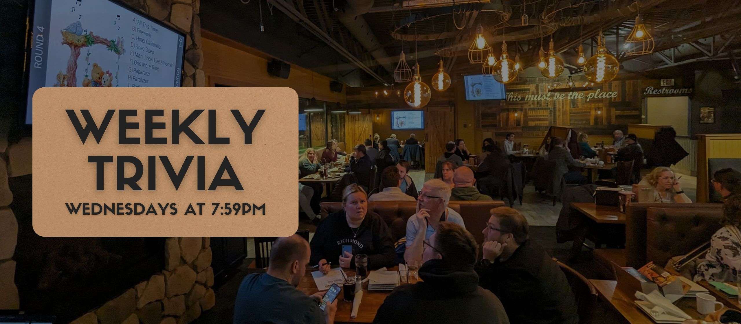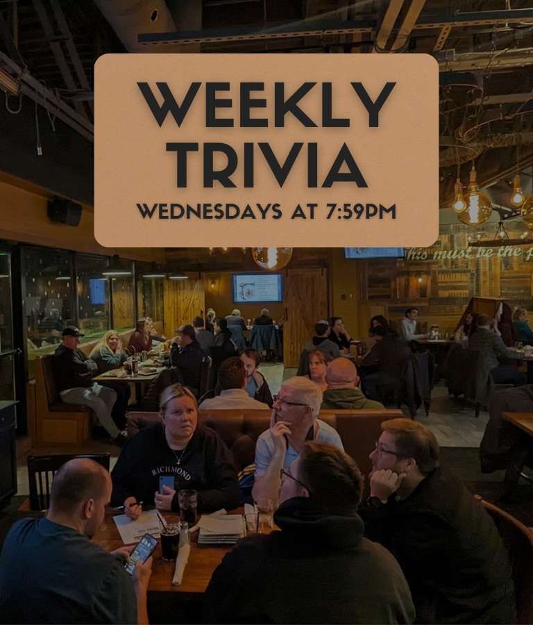 Join us every Wednesday at 7:59 PM for an exciting Trivia Night at District Kitchen & Bar in Aldershot - Burlington. Challenge your mind and have a blast with friends and family!